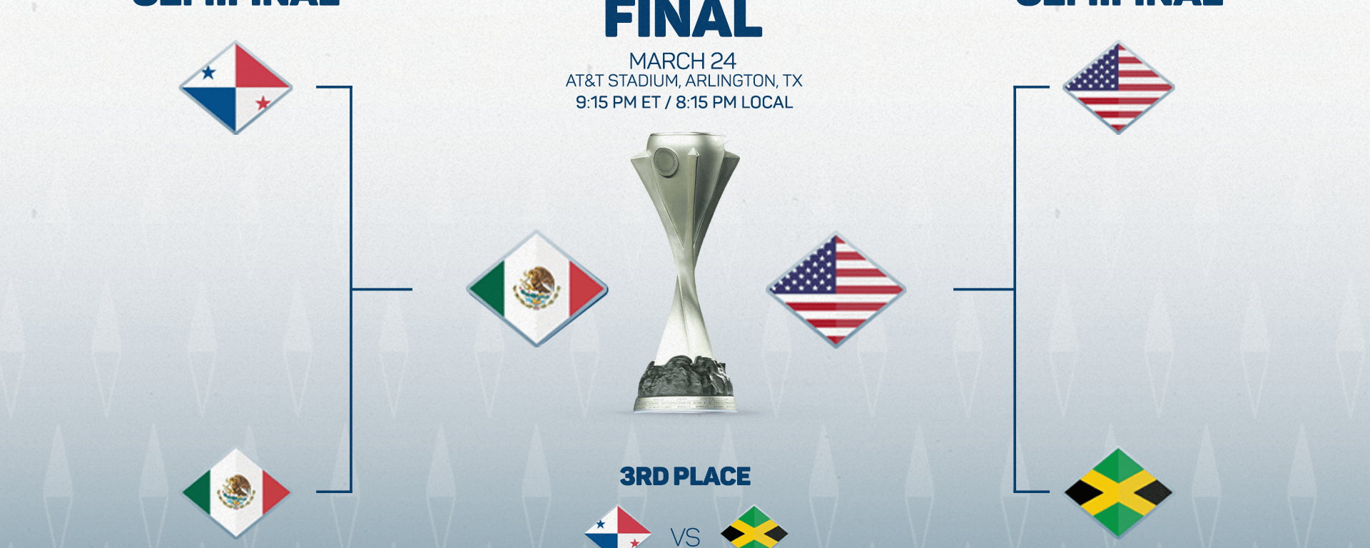 Sunday’s Final will crown the tournament’s third champion after the United States won the first two editions (2021 in Denver, CO, and 2023 in Las Vegas, NV). The losing semifinalists, Jamaica and Panama, will play the Third Place Match at 6:00 pm ET (5:00 pm CT/local).