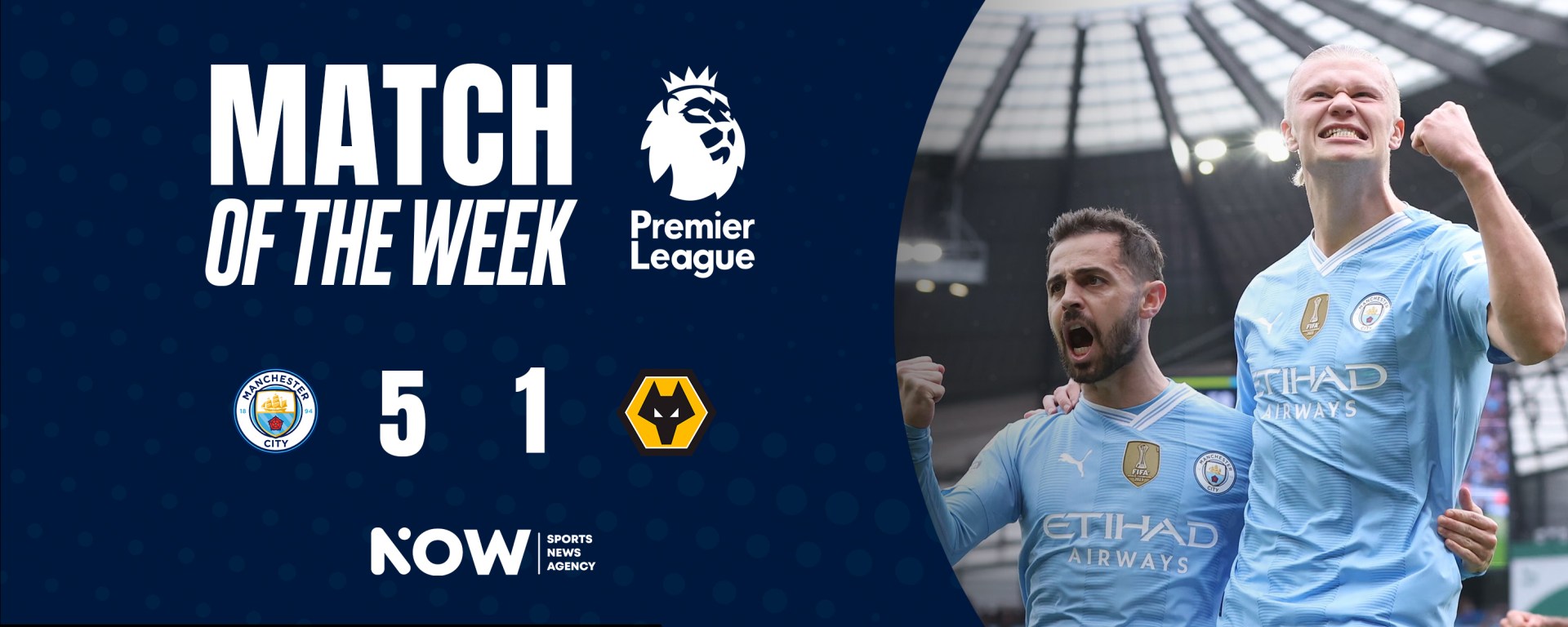 Manchester City beat Wolves 5-1 at the Etihad Stadium, as part of matchday 36 of the 2024 Premier League. Thanks to the four goals from Erling Haaland and the goal from Julián Álvarez, who entered with 10 minutes left to finish In the match, the Cityzens were, with a game in hand, just one point behind Arsenal, who easily beat Bournemouth earlier.
