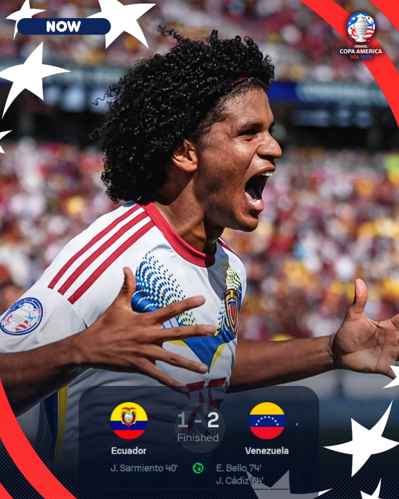 The scores by Jhonder Cádiz, at minute 64, and ‘Eduard Bello, 74’, opened the door for the Venezuelan squad, adding the three units with which it is momentarily placed as leader of Group B of the continental competition. sector in which Mexico and Jamaica are also present, who would play later.